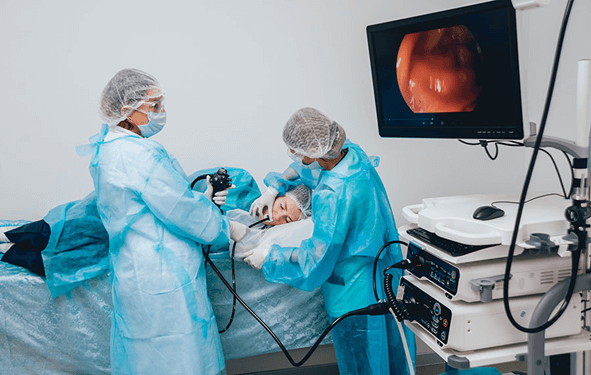 يتم إدخال أنبوب رفيع ومرن مزود بكاميرا عبر الفم لفحص المريء والمعدة. وهذا يسمح برؤية الالتهاب بشكل مباشر. مريء باريت (تغير ما قبل السرطاني)، وفتق الحجاب الحاجز، ومضاعفات أخرى. وهو ضروري لتقييم تلف الأنسجة والكشف عن الأورام الخبيثة.