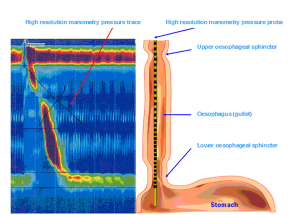 يقيس هذا الاختبار موجات الضغط في المريء باستخدام قسطرة رفيعة يتم إدخالها عبر الأنف. وهو يقيم وظيفة وتناسق عضلات المريء و العضلة العاصرة المريئية السفلية (LES)، وهو أمر بالغ الأهمية لتشخيص اضطرابات الحركة وتخطيط جراحات الارتجاع، وخاصة في حالات فتق الحجاب الحاجز.